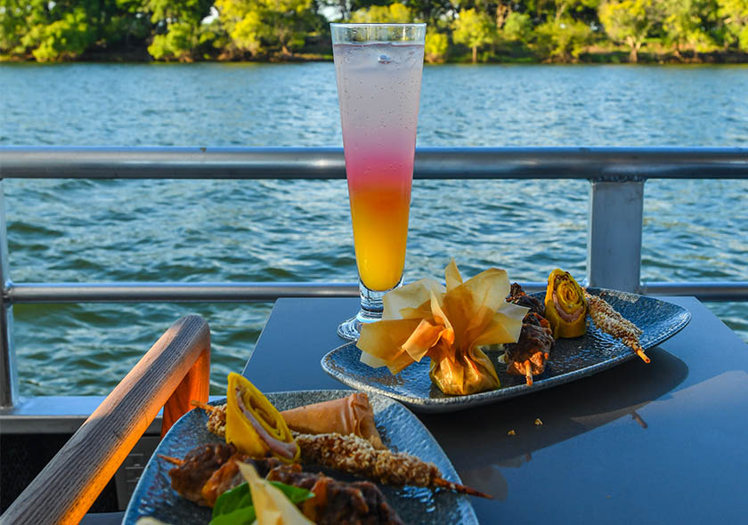 As you soak in the views, enjoy a selection of complimentary local beers, wines, spirits, and soft drinks, accompanied by delicious, freshly prepared snacks. For a complete experience, you can try the Dinner Cruise option which  includes a delectable 3-course meal served on the tranquil waters under the stars. This is the ultimate African sundowner experience.
